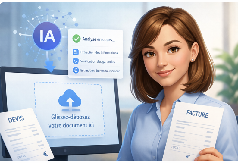 Je dépose un devis, une facture, pour une demande de remboursement de soins. l'IA de DJIN Santé va analyser sa conformité, mon contrat et indiquer les remboursements auxquels j'ai droit.